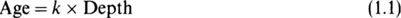 as old as sediments buried by 1 m and sediments buried by 3 m are three times as old and so on. Thus, if you double depth, you double the age, if you triple depth you triple the age and so on. This means that the sediment age is proportional to burial depth. This can be expressed, mathematically, by the equation