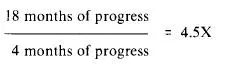 The child in this case is progressing at a rate 4.5X less than desired for average pupils of his or her age and grade. In the time it takes the child to master one month of work, his peers are mastering four and one-half months of work.