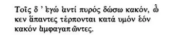You are pleased at having stolen fire and outwitted me—a great calamity both for yourself and for men to come. To set against the fire I shall give them an affliction in which they will all delight as they embrace their own misfortune1