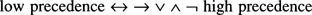 In order to reduce the number of brackets used in formulas a precedence order for arity one and two connectives is defined as follows: