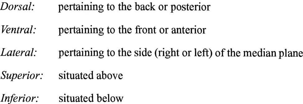 Understanding the following terms will help as you read about the various structures of the brain. This nomenclature describes the location of brain structures in relation to one another.