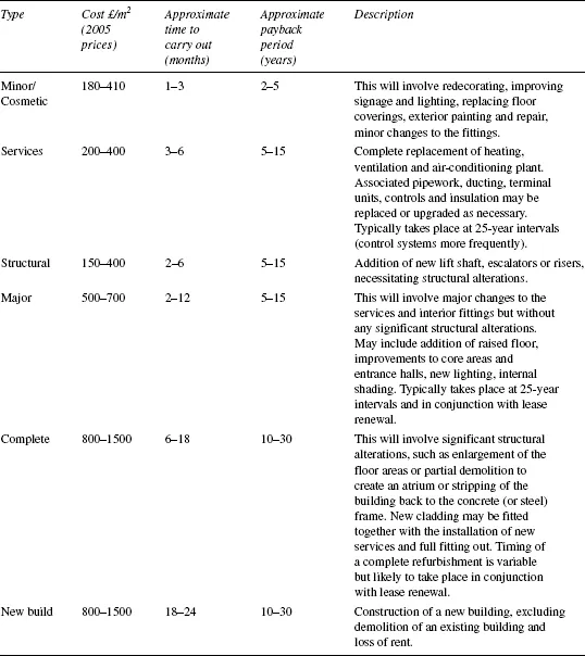 Table 1.3 Typical levels of commercial refurbishment (Based on Martin and Gold, 1999)