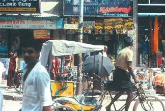 Figure4.1 Detail of a bicycle rickshaw and driver in Vellore, India. (Photograph courtesy of Howard Davis.)