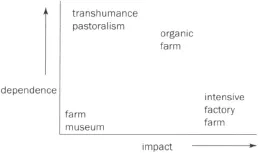 We are going to develop a model in which businesses are both influenced by the environment, on the one hand, while at the same time having some impact on it. Few businesses are totally free from the influences of the environment, although many have no significant impact themselves. These influences come through pressures to comply with environmental legislation or, through market pressures, to appear to be green. For some businesses, however, there is a much higher dependence on the environment. We shall see this dependence extends to all three sectors of industry: primary, secondary and tertiary. For the present the example of agriculture will suffice, since farming is clearly dependent on environmental factorsâmost obviously climate, hydrology and soil fertility. The relationship between dependence and impact is shown in Figure 1.1. The transhumance pastoralist is dependent on the environmental conditions but makes relatively little impact. By contrast, factory farmers have largely insulated themselves against the vagaries of nature but produce a much greater impact on the environment due to waste products, pollution, visual intrusion, etc. An organic farm depends on the environment to a greater degree since it cannot use artificial fertilizer or pesticides and it must make use of natural inputs to achieve its aims. An organic farm still has impacts on the environment but they are more benign than a factory farm. A farm museum has little direct dependence on the environment and little direct impact, although indirectly it could contribute to pollution and congestion caused by its visitors.