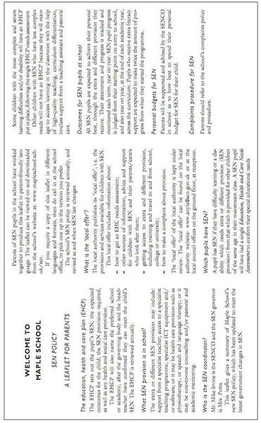 Figure 1.1 Model leaflet for parents summarising the school’s new SEN policy