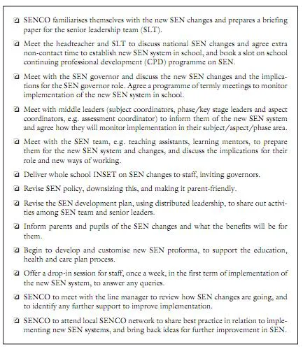 Figure 1.2 SENCO checklist for preparing to introduce SEN changes