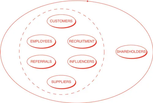 So far we have talked about three groups of stakeholders in the process of creating value: customers, competitors and employees. But other groups can influence the success of an organization. The seven markets model is shown in Figure 1.5 Effective marketing involves the realization that all stakeholders matter. They invest in the company and allow the business to invest in itself. But shareholders do not exist in a vacuum. There is overlap between the different groups. Employees may become shareholders, for example. Many companies have share schemes specifically to encourage this crossover. Shareholders may be encouraged by reference groups.