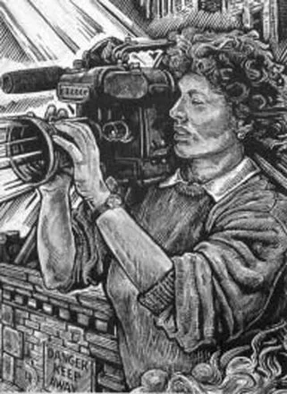 Figure 1.1 Illustration taken from the cover of ‘Camera Operations on Location: Guidance for managers and camera crews,’ HSE, HS(G) 169, ISBN 0-7176-1346-1. Crown Copyright