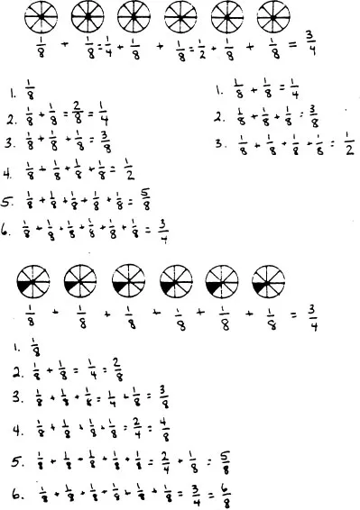 Fig. 12.1. Examples of student work for the problem of dividing 6 pancakes among 8 children.