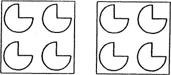 Frans drew the following figure on paper and wrote that this was the same as three pancakes for four people, only “Now it’s doubled”: