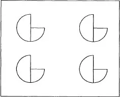 Comparison of the first and third line shows that two fourths are hidden in one half and so on. That is, what was already visible in the drawn material now can become anchored mentally and symbolically—namely, that