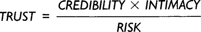 It is the correlation between ‘intimacy’ and trust that is particularly relevant here. It confirms the need for the face-to-face interaction that forms the core of this book. ‘Credibility’ can be built through other marketing activities, ‘risk’ is related to the spend of the client and so usually out of your control (although the plus point for professional services is that often a low cost trial of your organization is possible before a major commitment is necessary.)