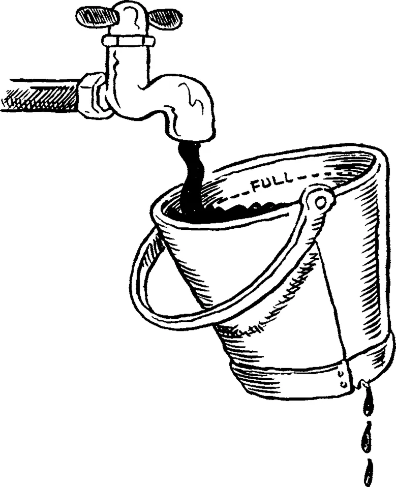 Your business can be represented by this leaky bucket; your objective being to keep the bucket full of water (read, business), indeed full to overflowing, the overflow representing profit, the water level representing work-in-progress. But the bucket has a hole in the bottom. Try as you may, you cannot completely plug this hole. It does not necessarily represent unhappy clients. There is a multitude of reasons why today's live client becomes tomorrow's lapsed client: budget cuts, absence of suitable briefs, personnel changes, etc. There are a number of ways you can attempt to reduce the diameter of the leak: contractual business, client maintenance programmes (see Chapter 11), etc. Yet there is one unavoidable solution: opening the tap above the bucket and letting the new business flow in, continuously.