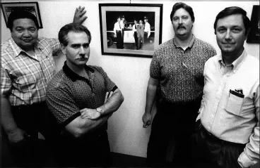 Figure 1.1 Surette Clarkās murderer was behind bars, but the childās remains had not yet been found when Detective Ed Reynolds and the other members of the Phoenix Police Departmentās Cold Case Squad posed for the press in 1998. From left, the detectives are Tom Gabriel, Frank DiModica, Ed Reynolds, and Robert Brunansky. (Photo by Todd Lillard. Reprinted from the Ahwatukee Foothills News, 14 October 1998. With permission.)