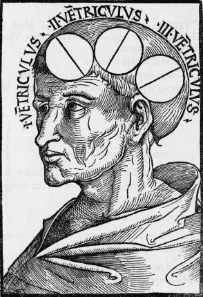 Ventricular localizationalists dominated brain science throughout the fourth and fifth centuries. Figure 1.1 depicts the neuroanatomical understanding of brain localization of the 1200s as envisioned by Albertus Magnus (1206–1280). Throughout the years following Galen, the dominant theory held that higher brain functions such as cognition, imagination, and memory were associated with the cerebral ventricles. The ventricles were where the spirits from the sensory nerves ended before being taken up by the motor nerves to invoke action.