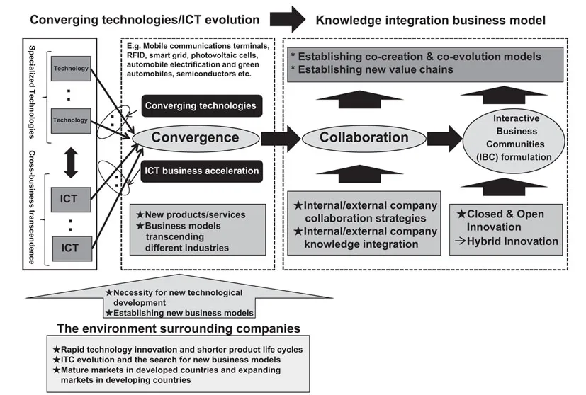 Higher technological performance, diversity and rapid evolution of ICT is bringing even more complexity to the business models that corporations should adopt. In this dramatically shifting modern corporate environment of rapid technological innovation, shorter product life cycles, mature markets in developed countries, expanding markets in developing countries, and the search for new business models in the evolving ICT field, companies have to strive to create new business models and develop new technologies. Companies need to pursue innovations that can provide customers with new value through the drivers of converging technologies and cross-industry ICT business creation. For these reasons, not only is the merging and integration of different specialist knowledge within companies important, but especially important is the integration of knowledge between corporations.