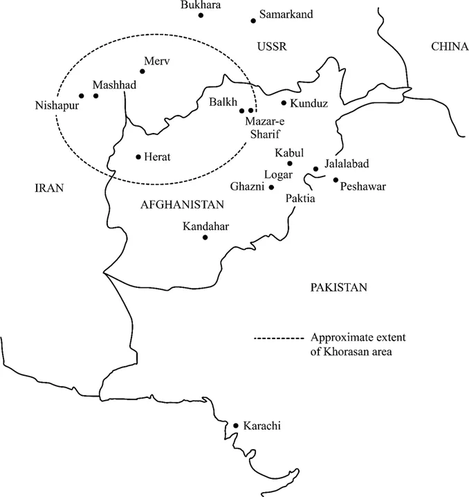 The remote land-locked country we know today as Afghanistan came into existence as a political entity in 1747. Celebrated as the âCrossroads of Asiaâ, the region had enormous strategic and economic importance, with trade routes from east to west along the many-stranded Silk Road, and north to south, connecting Central Asia with India. In addition, it was an important cultural crossroads, where different ethnic groups, often with individual languages, met and intermingled. The region was not called Afghanistan â the âLand of the Afghansâ â in 1747: much of the terrain was known as Khorasan (or Khurasan), once a great centre of urban civilization, scholarship and Sufism (Figure 1.1). In the eighteenth century the term Afghanistan, as used by European geographers, referred to a small area of the Pashtun homeland, as maps of the period indicate.2 Naming the whole area Afghanistan did not come into general practice until the nineteenth century, and was probably a British invention.