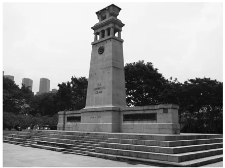 This form of national forgetting in Singapore was made starker by the presence of other instances of war commemoration spearheaded by foreign rememberers, such as in the form of the Cenotaph (initially established in the 1920s to honour the dead of the First World War although later symbolically laden with memories of the Second World War dead) (Figure 1.1), and the Kranji War Cemetery and Memorial to collectively remember Commonwealth men and women sacrificed during the two wars, and where regular ceremonies (such as during ANZAC Day) to commemorate the war dead of specific foreign nations were held.2 While the Singapore state was involved in the development of Fort Siloso – a battery of guns on the offshore island of Sentosa which played a marginal role in the war – in the 1970s, this effort was not so much a token of remembrance but a means to supplement the stock of tourist attractions in Singapore (see Chapter 6). The only exception in the immediate post-independence years was the setting up of the Civilian War Memorial on 15 February 1967 – led by the Singapore Chinese Chamber of Commerce (and with the help of the state which contributed the land and matched donations dollar for dollar) – to honour the memories of locals who died during Japanese-led massacres.3 By and large, however, the newly-minted state in the early decades looked forward rather than backward, favouring the ‘flattening out of history’ in order to frame urban development around a ‘progressive historical narrative’ (Holden 2008: 351). Even so, during these years, the war period of 1942–45 was still very vividly remembered especially by those who lived through the Japanese Occupation (Blackburn and Hack 2012). An example of these non-official efforts is the establishment of a memorial cross in the grounds of the Singapore General Hospital commemorating a group of students from the King Edward VII College of Medicine killed during the Second World War (Figure 1.2).