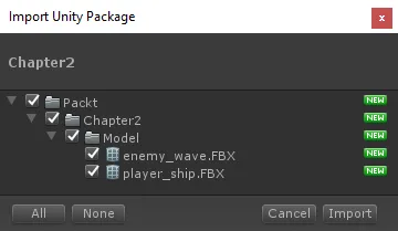 - Create a folder in the Assets folder called Resources, and move our Model, Prefab, Script, and Material folders into it. The following screenshot shows what our folder structure should look like now:
