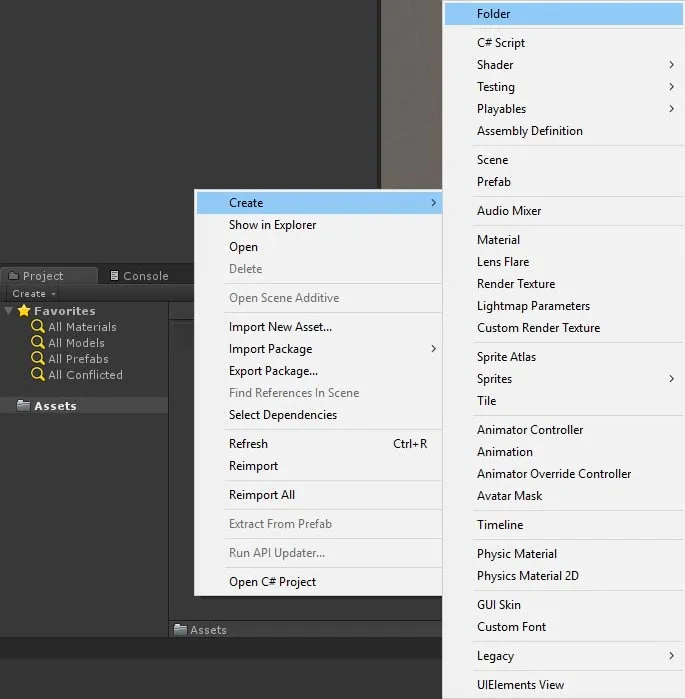 - Within our Prefab folder, create another two folders, Enemies and Player.