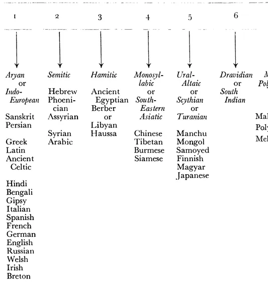 SO long ago as 1822, that great German thinker and linguist, Wilhelm von Humboldt, stated, and exactly a century later Otto Jespersen, the famous Danish writer on language, repeated, that languages are so different in form that it is impossible to classify them both accurately and comprehensively, or to divide the languages of the world into groups or families in such a way as to account satisfactorily for absolutely all of them.