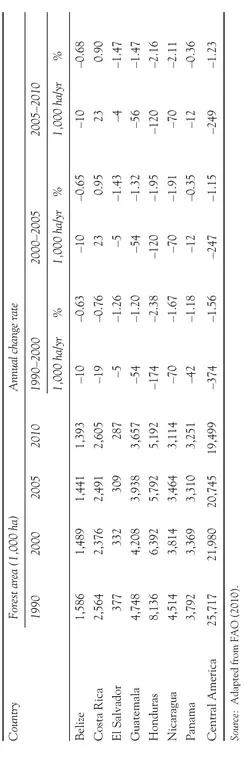 Table 1.1 Forest area changes in Central America between 1990 and 2010