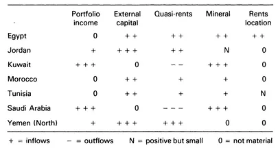 The array of 'special resources' is shown in Table 1.1, which lays out the taxonomy of special flows into or out of the major Arab economies of the Middle East. The impact and relative importance of each type of flow differs from country to country and will be discussed in the last part with respect to specific examples: here we shall pursue only the general features.
