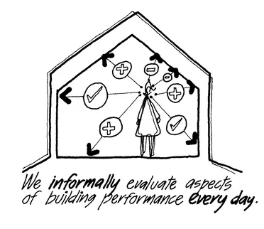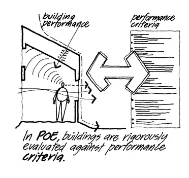 The performance of buildings is evaluated regularly, although not necessarily in a self-conscious and explicit way. In a hotel room, for example, conversations taking place next door may be overheard. In this case the acoustical performance of the building is being assessed. The room temperature, the quality of lighting, storage, finishes, and even the esthetic quality of the view from the hotel window are also informally evaluated.