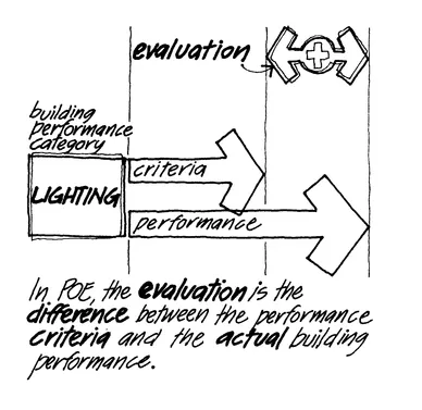 By analogy, POEs are intended to compare systematically and rigorously the actual performance of buildings with explicitly stated performance criteria; the differences between the two constitute the evaluation.