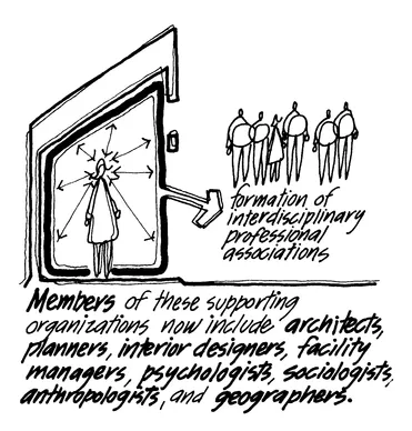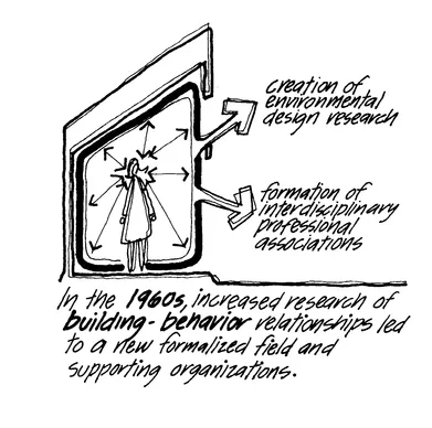 The 1960s saw the growth of research focusing on the relationships between human behavior and building design, which led to the creation of the new field of environmental design research and the formation of interdisciplinary professional associations, such as the Environmental Design Research Association in 1968. Members of these associations include architects, planners, facility managers, interior designers, psychologists, sociologists, anthropologists, and geographers. Emerging professional specializations include human behavior-based building research, facility programming, and, most important, POE. Further manifestations were the increasing numbers of publications (Preiser 1978), including books on evaluation methods, case study applications, and new journals that featured POEs, Environment and Behavior, the Journal of Environmental Psychology, and major architectural magazines, such as Architecture and Progressive Architecture, began to publish building evaluations.