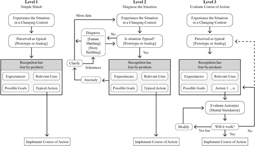 Using NDM, decision-making models have been developed in dynamic and natural environments (e.g. Hoc & Amalberti, 2007; Klein, 1997; Rasmussen, 1983) to provide an alternative to the classical models of decision-making developed in static environments (e.g. Tversky & Kanheman, 1974). NDM models showed that experts did not often compare possible options; rather, they often took the first option that came to mind (e.g. Klein, 2008). Klein, Calderwood, and Clinto-Cirocco (1986) and Klein (1997) developed the Recognition Primed-Decision (RPD) model to explain how experts use their experience to make good decisions in natural settings. The RPD model postulates that experts rely on intuition to make their decisions. They use their experience to quickly draw a picture of the situation and make rapid decisions without having to compare options (Klein, 1997).