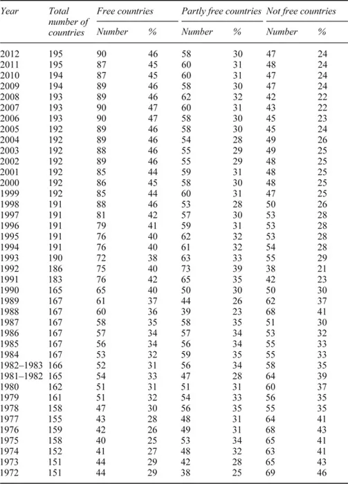 Table 1.1 Number of âpartly freeâ hybrid regimes (1972â2012)