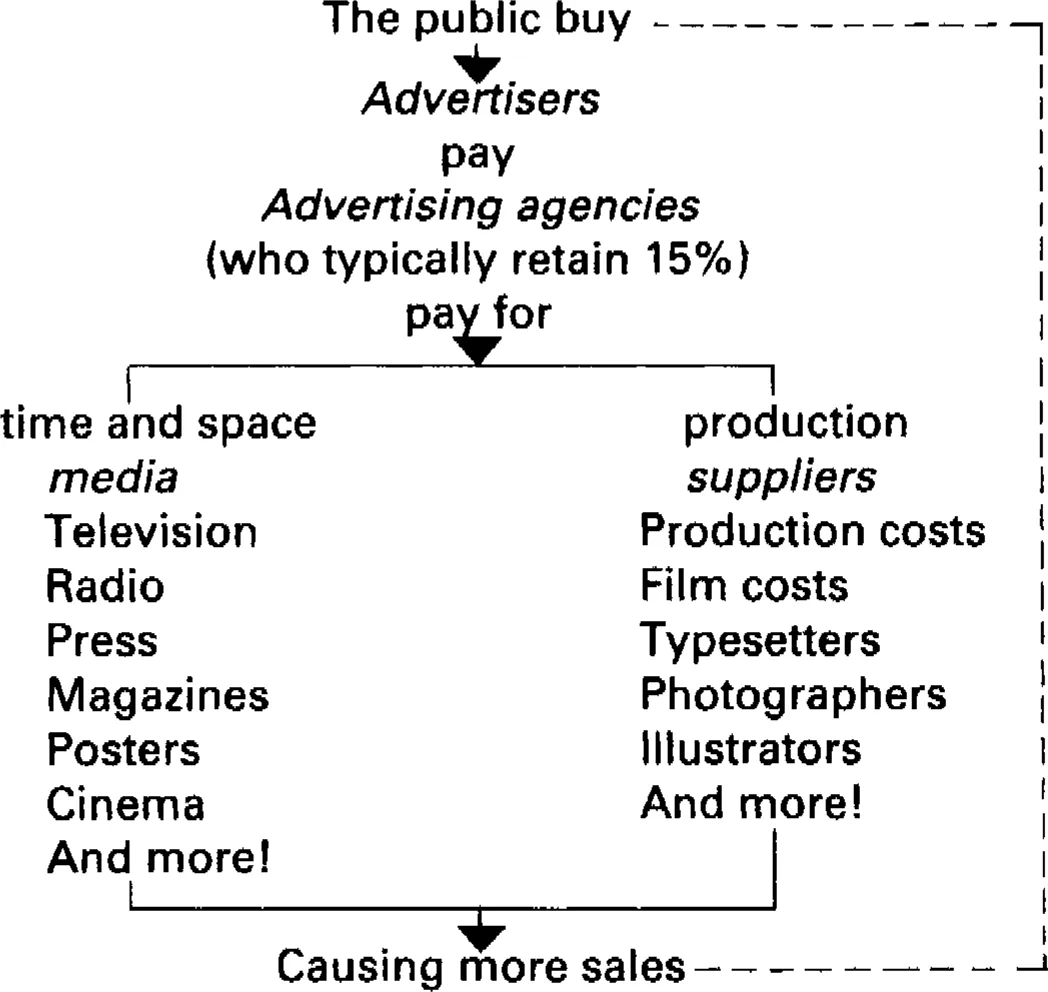 The media take most of any advertiserâs money â 85 per cent as a rule. The agency holds on to 15 per cent of the media expenditure as a commission, although some now agree to charge fees instead. Media have their own sales departments which compete for slices of advertising budgets. They lobby the advertisers and the agencies.