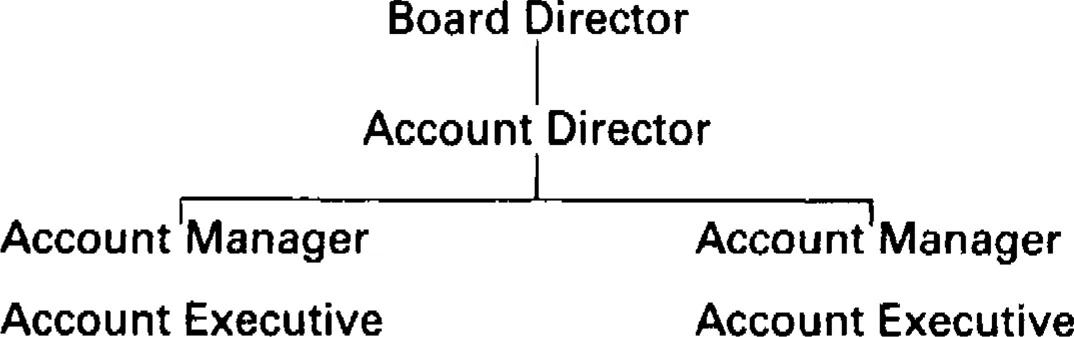 These managers will usually report to directors who may, in turn, report to others. The agencyâs contact is only one individual in one department within the company, and the companyâs definition of its priorities may not coincide with that of the department. The advertising agency sometimes provides a shoulder for its frustrated clients to cry on.