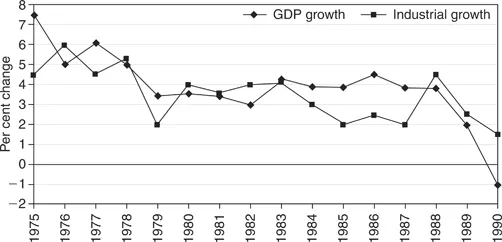 Figure 1.1 USSR GDP and industrial capacity growth, per cent change (1975â1990).