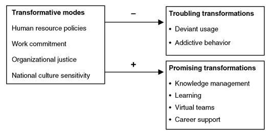 We are also developing insights into how to manage through transformative modes such as human resource management, work commitment, organizational justice, and sensitivity to national culture differences. Thus transformative modes have a containing or diminishing effect on troubling transformations and an encouraging effect on promising transformations.
