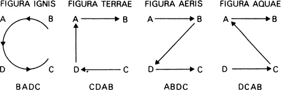 These patterns can be expressed in geometrical terms. The Arts were based on three geometrical figures, the Triangle, the Circle, and the Square, and these figures are implicit in the arrangement of the Elements in the Elemental Figures (Figure 1).