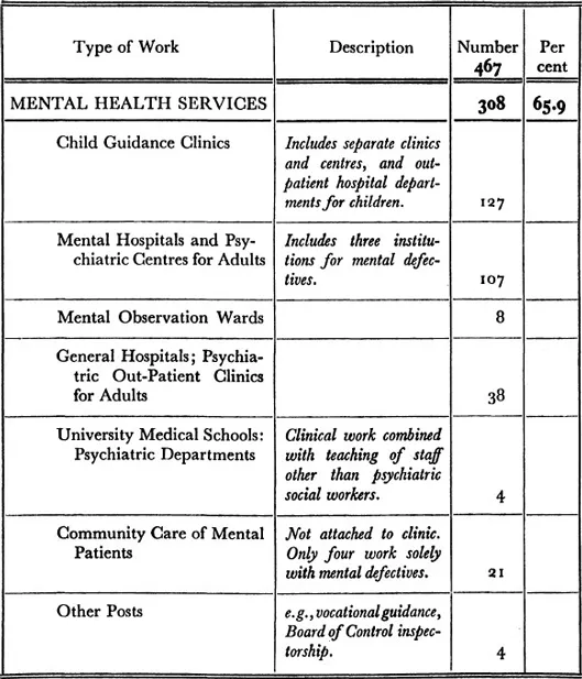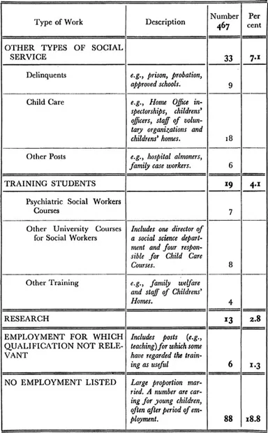 Occupations of Members of the Association of Psychiatric Social Workers Living in the United Kingdom, According to the List Published by the Association in January 1951, Supplemented by the List of April 1952.
