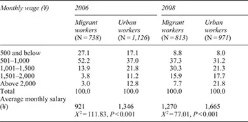 Table 1.1 Comparison of the monthly income of migrant workers and urban workers (%)