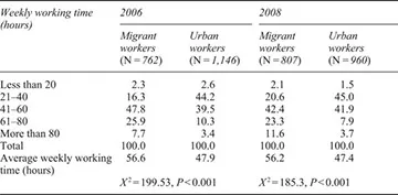 Table 1.2 Comparison of the weekly working time of migrant workers and urban workers (%)