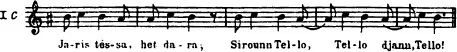 Le chĆur le rĂ©pĂ©ta identiquement, et la coryphĂ©e chanta la premiĂšre partie de la chanson et le premier vers du refrain :