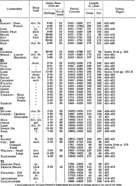Prices from the Lord Stewardâs Department, accordingly, have been tabulated only from 1659 or later. The price tables are continued, where information is available, up to 1830 and could be carried further.