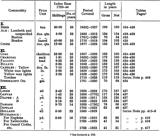 Each accession of a new monarch seems to have had a certain influence on the continuity of contracts and the level of prices, but except for the two periods of important change mentioned above, it is not sufficiently great to render the series discomparable or justify the insertion of a warning in the tables. Special coronation purchases at low prices in 1688 and 1727 have been discarded.