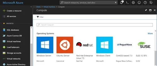 Create virtual machine, you’ll get to see all the operating systems and solution templates that Azure provides to create a machine. You can choose to have Windows or Linux operating system based on requirements, but be careful about costs involved: