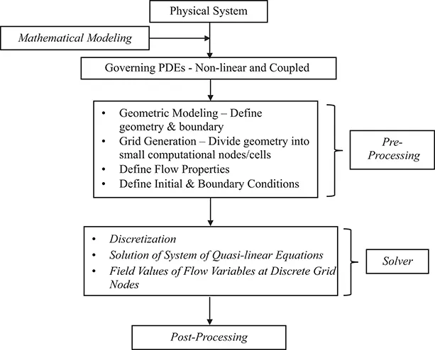 This textbook covers fundamental and advanced concepts of computational fluid dynamics, a powerful and essential tool for fluid flow analysis. It discusses various governing equations used in the field, their derivations, and the physical and mathematical significance of partial differential equations and the boundary conditions. It covers fundamental concepts of finite difference and finite volume methods for diffusion, convection-diffusion problems both for cartesian and non-orthogonal grids. The solution of algebraic equations arising due to finite difference and finite volume discretization are highlighted using direct and iterative methods. Pedagogical features including solved problems and unsolved exercises are interspersed throughout the text for better understanding. The textbook is primarily written for senior undergraduate and graduate students in the field of mechanical engineering and aerospace engineering, for a course on computational fluid dynamics and heat transfer. The textbook will be accompanied by teaching resources including a solution manual for the instructors.