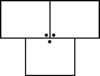 Burgess was limited by the data and computation technology of his era. The original crime mobility triangle was not really measured as a triangle at all. The researchers were lucky to have data disaggregating crime or delinquency by local urban tracts,3 and were in no position to calculate the actual distances of journeys taken, or the area covered. As a result, they asked simpler empirical questions. Did all three points lie within the same local urban tract? If so, the illicit act is considered entirely local. If none of these points was located in the same local tract, the illicit act is coded as non-local. Sometimes two of the three points are together but the third is not, requiring an intermediate coding. Figure 2.1 illustrates the limitations of the original Burgess approach. Although the three points in this triangle are actually quite near, they are defined to be in three separate local tracts, pointing toward a false conclusion that they are non-local. Conversely, a large social area might have all three points dispersed within it but defined as if they are contiguous.