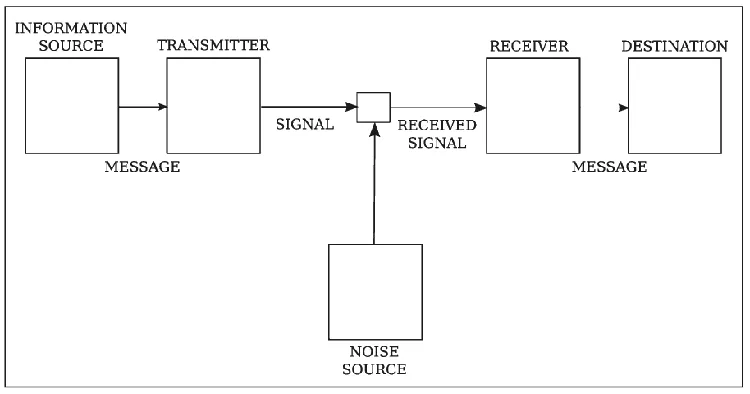 Considered closely, the implications of this position are that communication within a marketing environment is something done by marketing to consumers; there is one âvoiceâ and it is the voice of the brand and it is used to âestablishâ a dialog. Clearly, then, there can be no dialog that is not instigated by the brand and concomitantly there can be no relationship that is not initiated by the brand. The assumption here is that the consumer is passive, solely reacting to the initiative of the marketer. Perhaps it might be argued that one small sentence should not be held as representative of an entire authorial position. Yet, the assumptions that inform Kotler and Kellerâs definition of marketing communication are made even more manifest in their ensuing discussion of the two communication models they advance as the providers of âthe fundamental elements of effective communicationsâ (ibid., p. 539). The macromodel presented by the authors is an expanded version of the classic SenderâMessageâReceiver model advanced by Claude Shannon (1948; see Figure 1.1) and then re-presented with an introduction by Warren Weaver in the 1949 study, The Mathematical Theory of Communication.