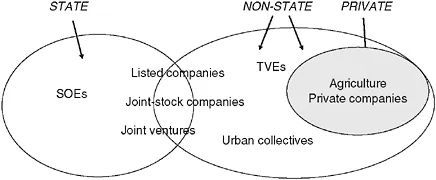 As of the early 1980s, the situation was relatively straightforward, in that almost all economic activity was owned and controlled by the state in one form or another. The agricultural sector was made up of communes. Urban industry and services were dominated by SOEs. Everything else was pretty much divided into so-called ātownship and village enterprisesā (TVEs), which operated outside the cities, and urban collectives for small-scale urban activity. These last two were never formally integrated into central economic plans, but were still solidly state-owned in theory. For institutions of any size, managers were directly appointed by the government, and in the rest they were elected by the collective.