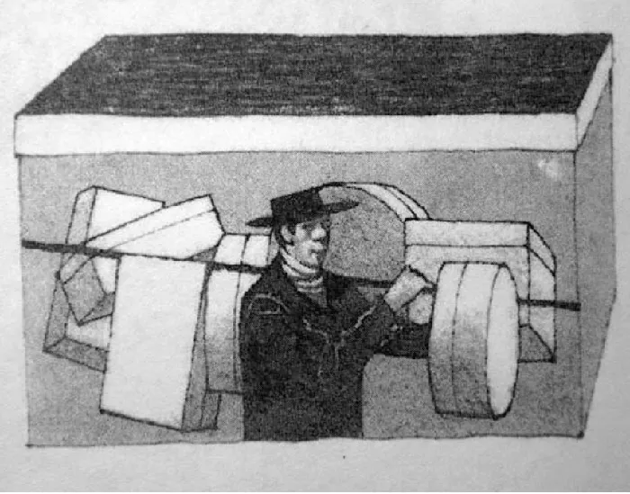 The watercolor is by William Marshall Craigâan artist who also produced illustrations for Tabart and his mentor, publisher Richard Phillips (1767â1840). It is one of a series of watercolors, commissioned by Phillips, of street vendors selling their wares in front of famous London landmarks. The fact that the âBand Boxâ (also known as a bonnet box or hatbox) seller is painted in front of Tabartâs shop becomes, in itself, a statement about the importance of the address. The hatbox seller in the foregroundâwith only the âBibliotheque dâEducationâ and the street sign âBond Streetâ visible in the backgroundâsuggests a scrambled visual link between French fashion and the bookshop. The marketing message is that books were not only educational, but also fashionable as accessories. Fenwick exploits the same conceit in Visits to the Juvenile Library. The advertisement itself, incidentally, was arresting enough to attract the attention of the childrenâs book artist, Charles Keeping (1920â88), who used the image, with its strong cubes, to accompany a poem by Charles Causley, âSong of the Shapesâ (Figure 1. 3).