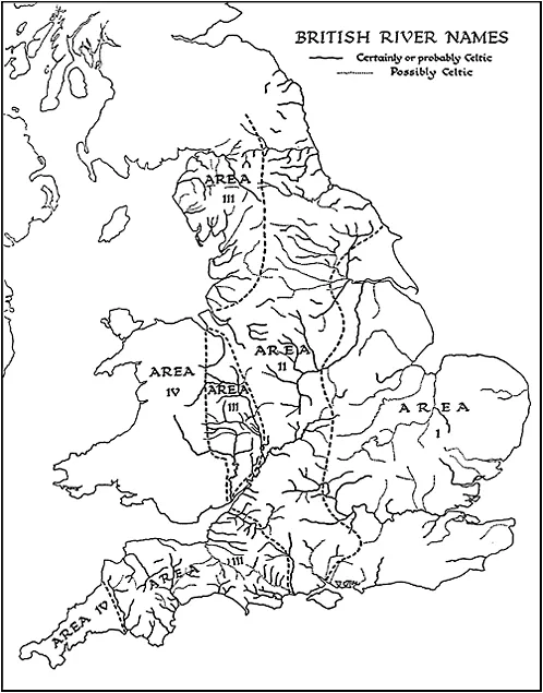 In Area I, as Jackson explains, Brittonic river-names are rare, and they are mainly those of large or medium-sized rivers, e.g. the Trent, the Thames, the Thame, and the Darent.2 Combining this evidence with other types of historical evidence leads Jackson to conclude that this area corresponds more or less with the extent of the first English settlements down to about the first half of the sixth century (op.cit., 221â222). In Area II, by contrast, Brittonic river-names are much more common, and the number of those with a certain Celtic origin is greater than in Area I. In settlement terms, this area reflects the advancement of the Anglo-Saxon occupation by the second half of the sixth century in the south and the first half of the seventh in the north (op.cit., 222). Area III, then, covers in the north those areas of present-day Cumberland, West...
